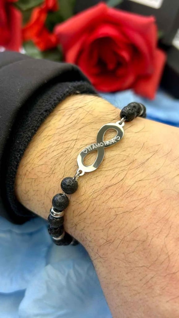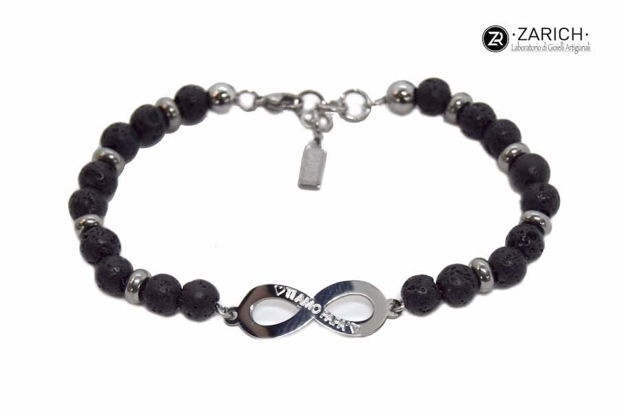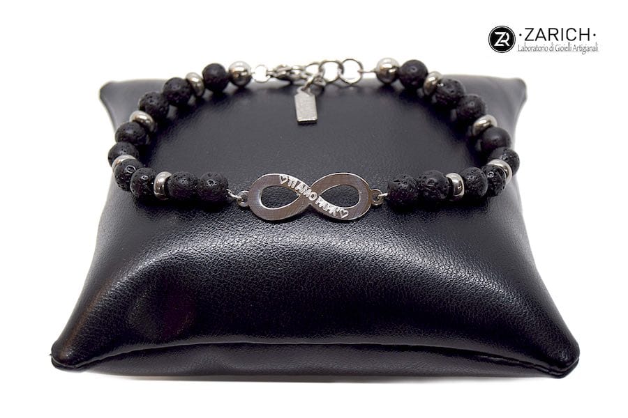 pietre laviche naturali lavorate a mano in acciaio inossidabile e infinito centrale personalizzabile nell’incisione.