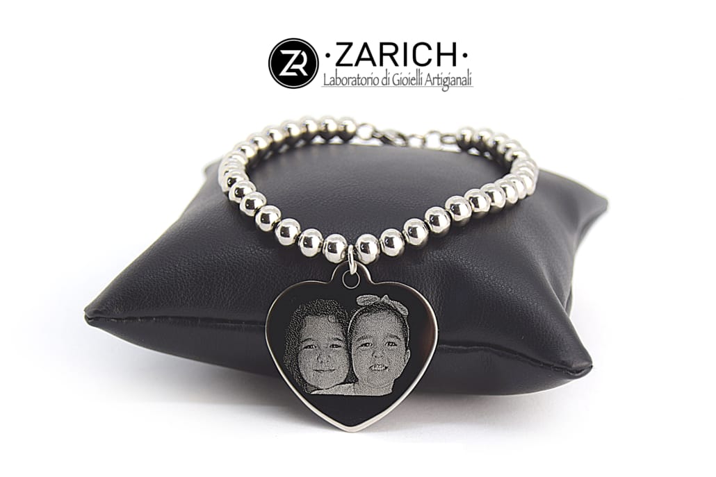 Bracciale con sfere e cuore fotoinciso in acciaio inox free nichel completamente realizzato a mano.