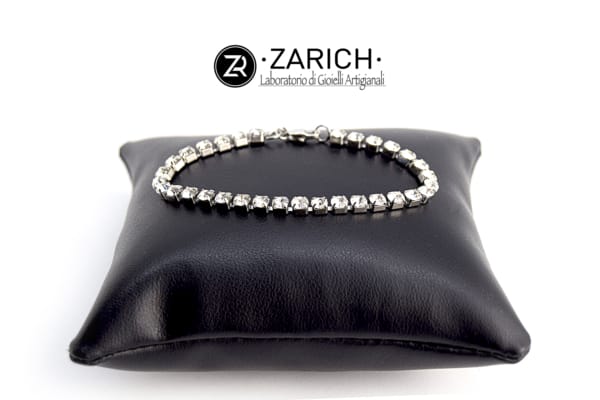 Bracciale in acciaio inox free nichel saldato a mano con zirconi bianchi.