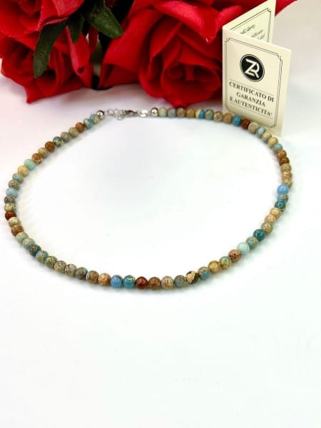 base in acciaio inossidabile e pietre diaspro imperiale tonalità turchese dal diametro di 6mm.
